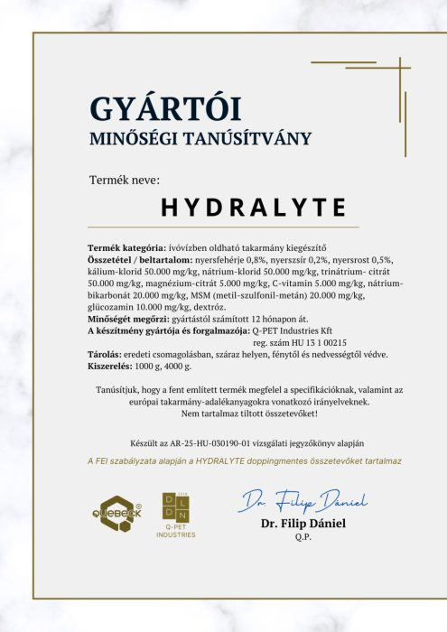 A HYDRALYTE a FEI szabályzata alapján doppingmentes kiegészítő.