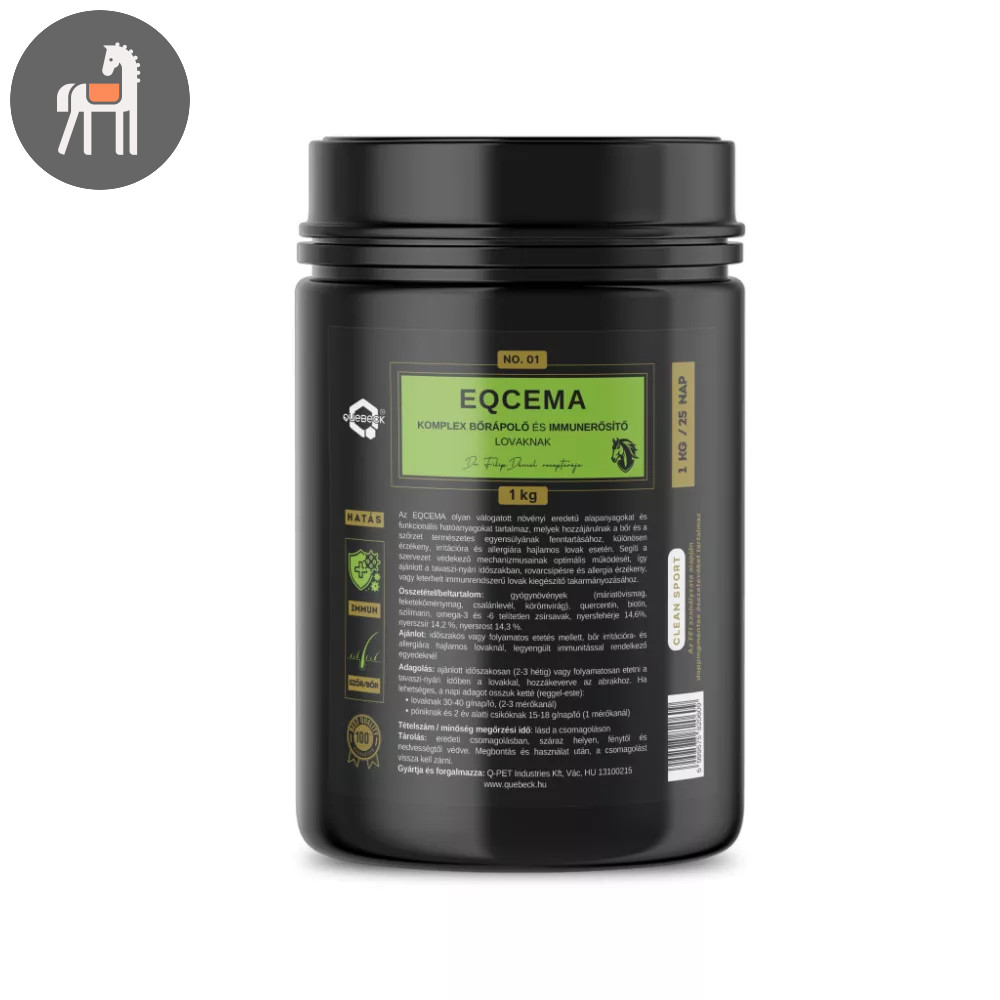 Az EQCEMA különleges, célzott összetételű takarmánykiegészítő, amely válogatott növényi alapanyagokkal és funkcionális hatóanyagokkal támogatja az érzékeny bőrű, rovarcsípésekre hajlamos lovakat – kívül-belül.