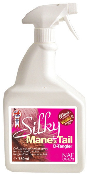 A NAF Silky Mane & Tail D-Tangler egy kiváló minőségű kondicionáló és tápláló spray, amely gyorsan simává, fényessé, elegánssá és gubancolódásmentessé teszi a problémás farkat és sörényt.